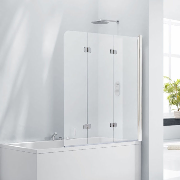 Stock CheckerA soak in the bath or a hot steamy shower? Combine the best of both worlds with a super convenient and sleek bath screen from our range. Azar Aquaglass 6mm frameless bath screen with 3 folding panels clear glass H1400 x W1200mm.