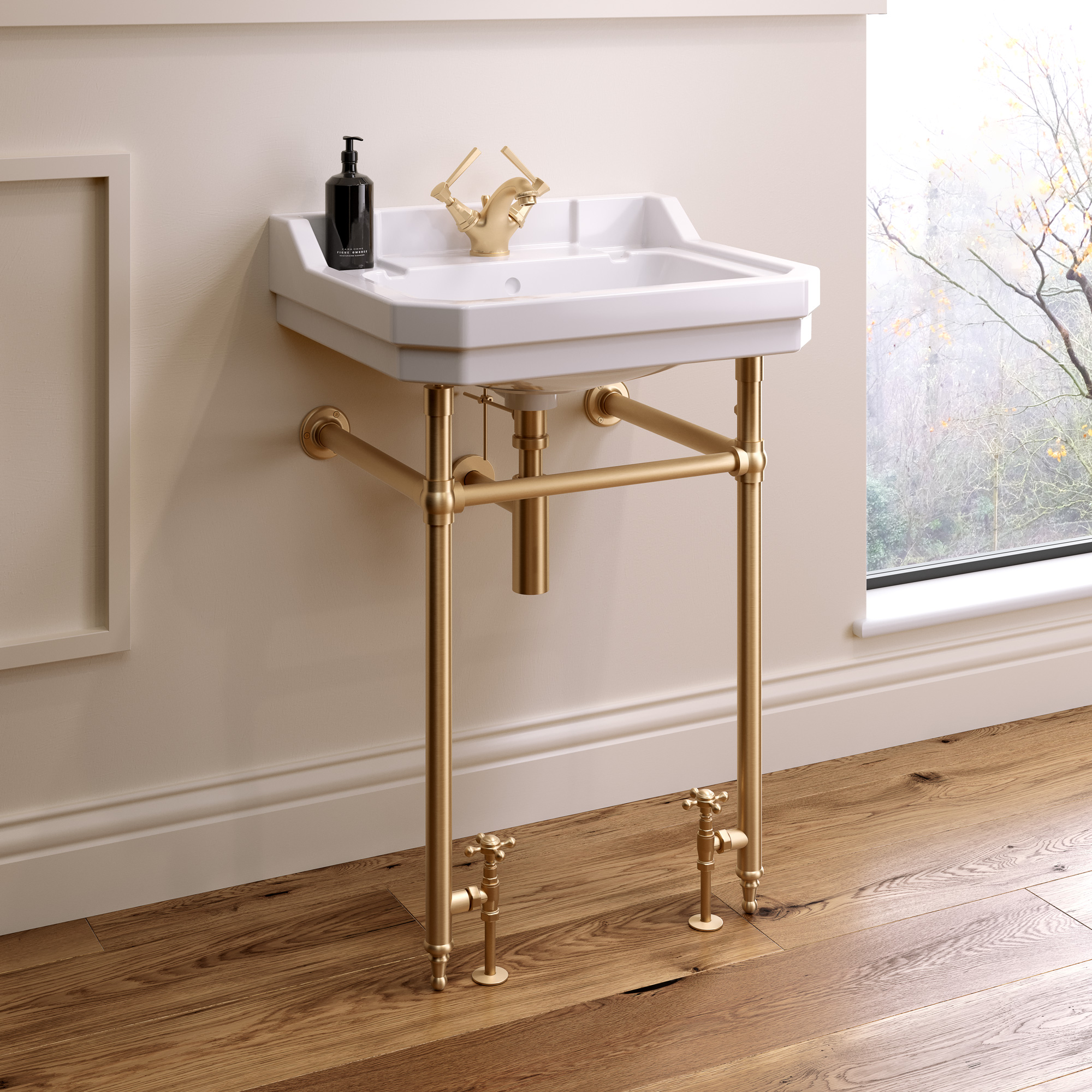 Stock CheckerBring warmth and sophistication to your bathroom with the Holborn Washstand in a stunning brushed brass finish. Designed with a single tap hole and a compact 610mm width, this elegant piece is ideal for both classic and contemporary interiors. The brushed brass legs not only support the sleek ceramic basin but also function as heated towel rails—offering a luxurious, space-saving solution. With its refined detailing and practical design, the Holborn Washstand is a statement of timeless style and everyday comfort.