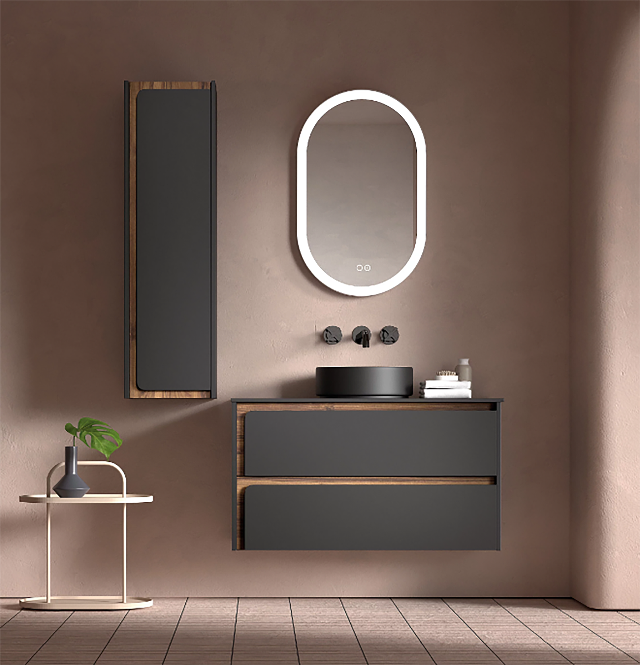 Stock CheckerThe Indico range defines bathroom storage with contemporary flair, adding decadent glamour and unmatched sophistication to your space. Available in bold matt black and walnut or crisp matt white and light oak, the handleless design features a striking 3D contrast of matt lacquer and wood grain. Crafted with exceptional Spanish craftsmanship, it's the perfect luxury, trend-led storage solution.