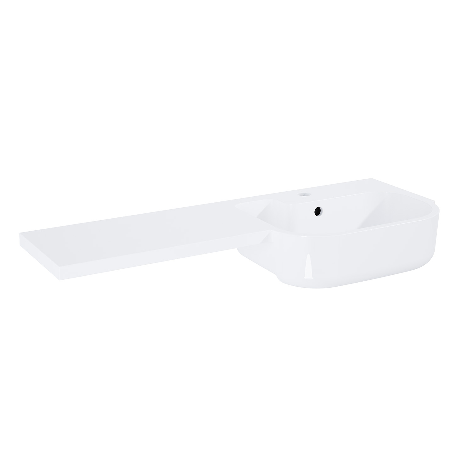 Stock CheckerThis stunning white furniture unit is perfect for cloakrooms and en-suite bathrooms. Featuring a shelved vanity, toilet unit and discreet metal cabinet handles for an opening, this space-saving solution offers clever bathroom storage and has been artfully designed. Its white gloss design is contrasted with muted ceramic that has been smoothed and toned down to give you a basin and worktop with a natural finish.